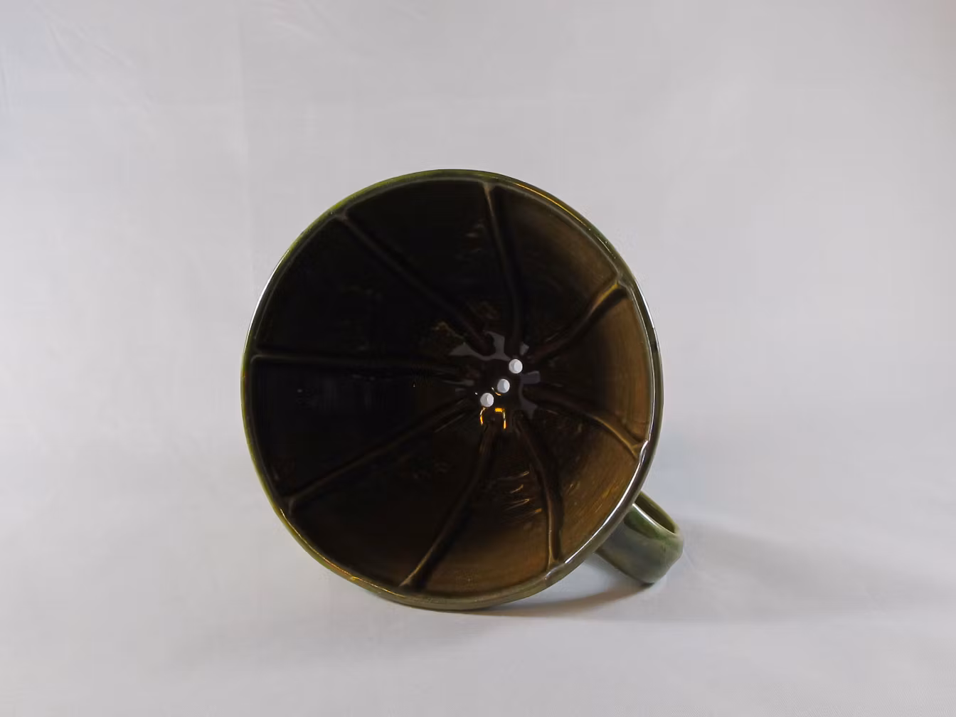 Kaffesil med räfflor på insidan och tre hål i botten.