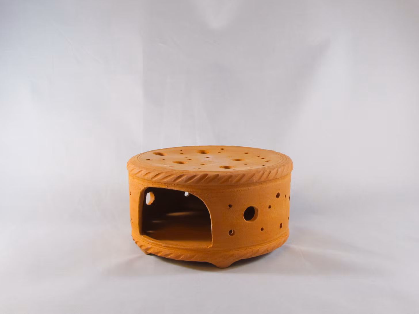 Tevärmare i lergods. Som värmekälla funkar värmeljus utmärkt.