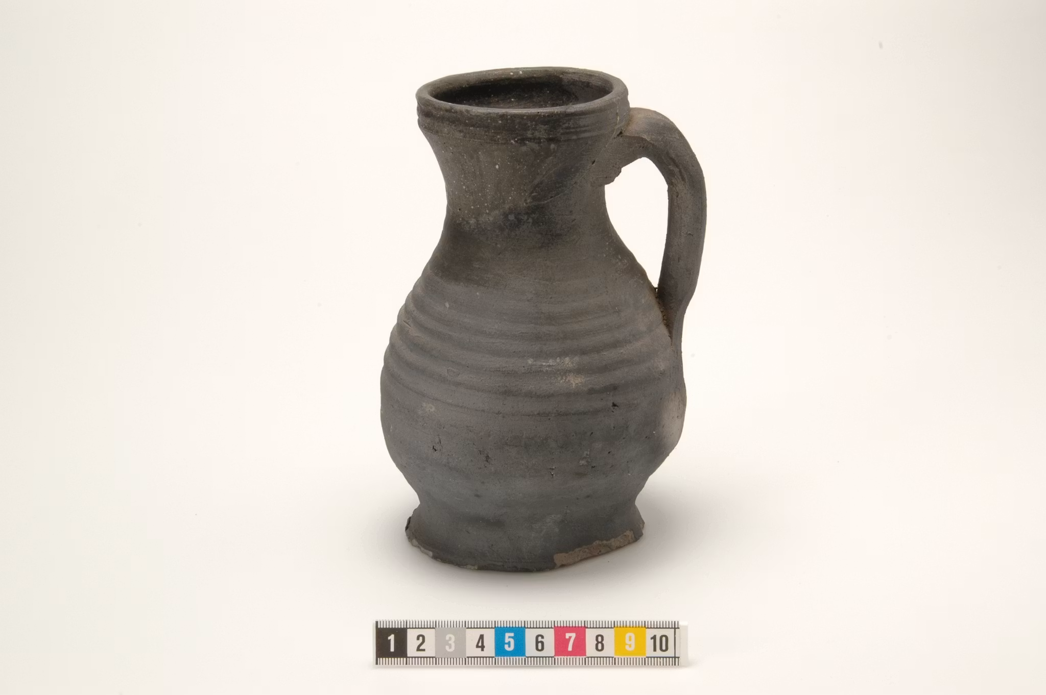 Black ware jug found in Slottsfjärden, Kalmar, 1935. Probably German import. Dated to the 14th century.