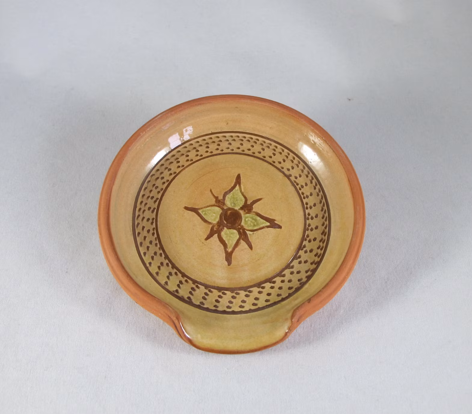 Ett praktiskt skedfat att ha bredvid spisen med mönster inspirerat av traditionella praktfat.