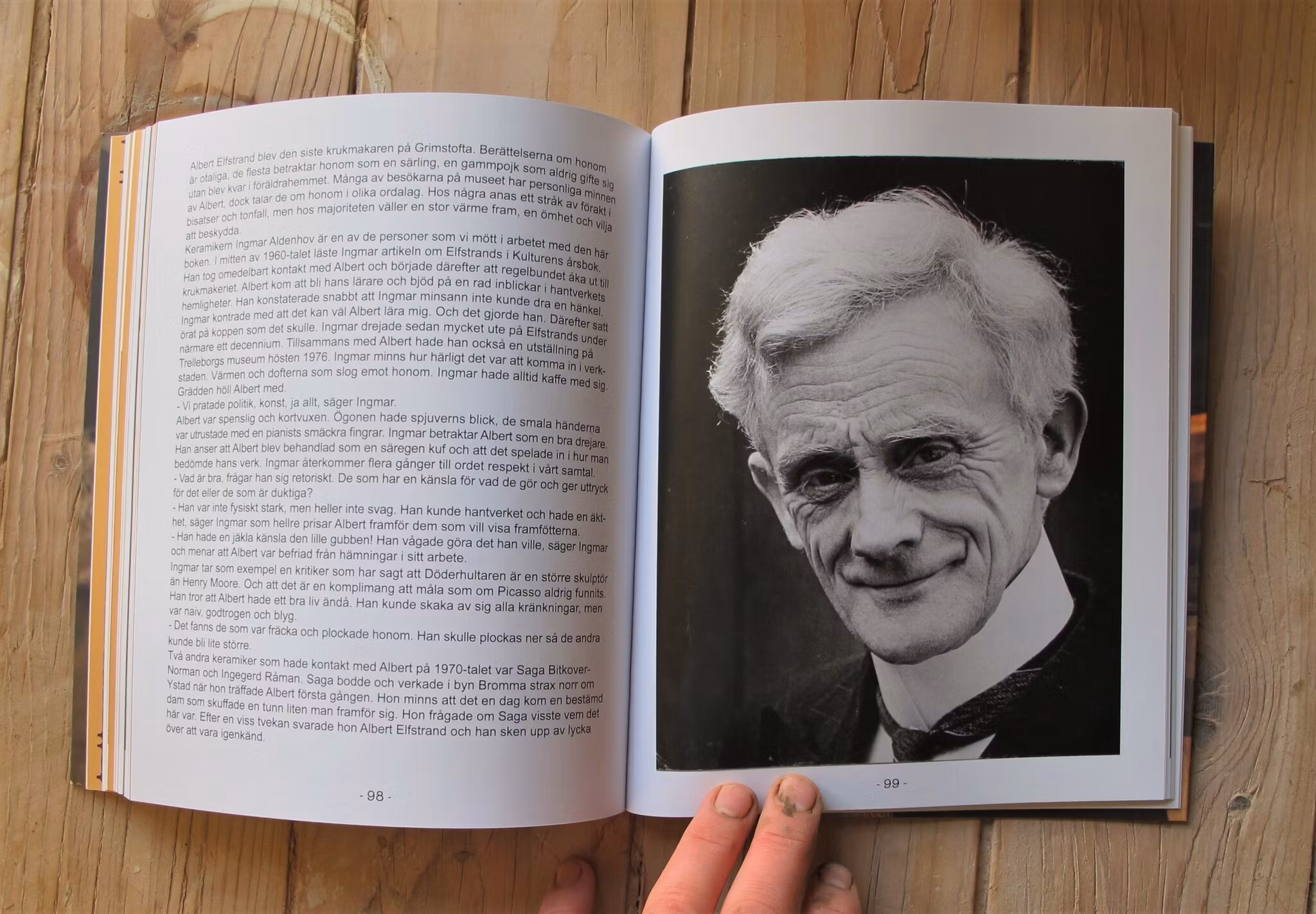 En berättelse om Elfstrands krukmakeri. Sindre Kultur. Format 185 x 225 mm, 140 sidor. Trådhäftat mjukband. Text Anna Gunnert, foto och formgivning Alice Bindby.